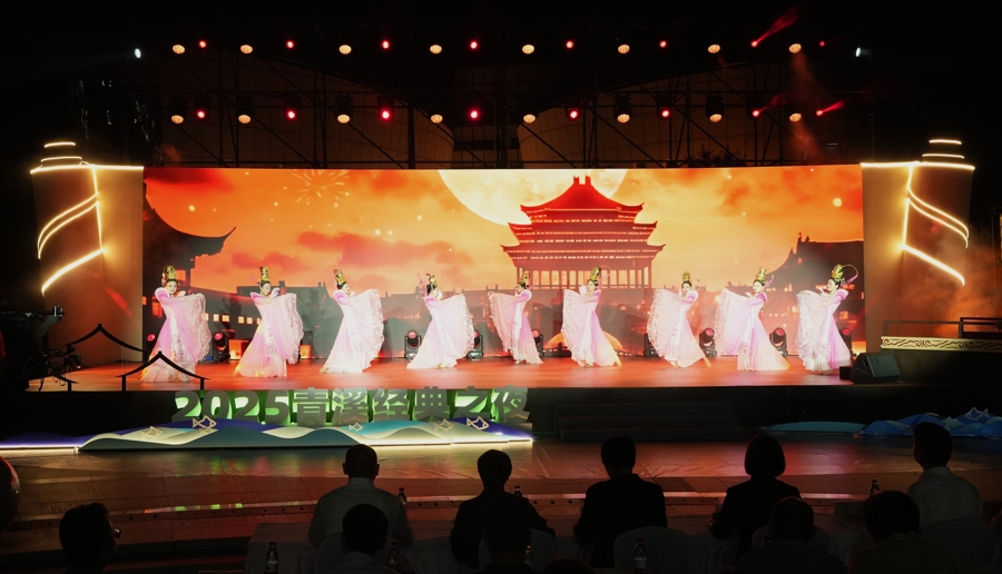 记者从青浦区获悉,11日晚,“盛唐华章——2025年青溪经典之夜”活动在青浦崧泽广场举办。典籍与文物交相辉映,在光影与歌舞中,千年文明在此灿烂重现。