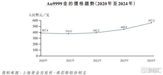 足金首饰在中国内地珠宝市场占主导地位,且占比持续扩大,2024年占总销售收益的72%。可见消费者仍然接受黄金作为文化象征及储存价值的双重角色,且常用于婚礼及送礼等场合。