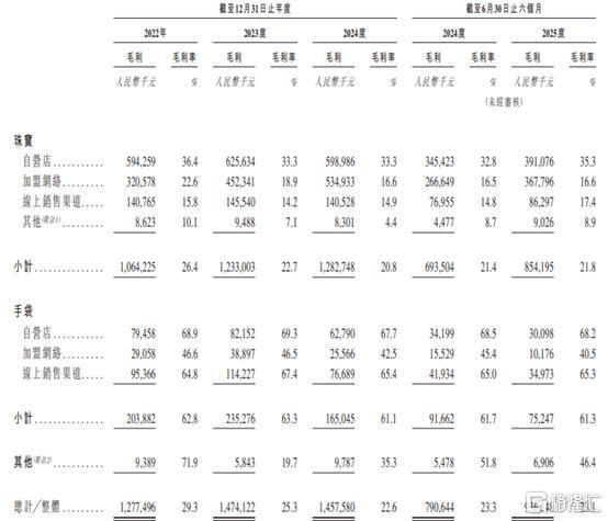 值得注意的是,2022年至2025年上半年,潮宏基的贸易应收款项从约2.66亿元增加至3.7亿元,贸易应收款项主要包括应收交易对手方款项,特别是加盟商、经由特许经营安排将产品转售给终端消费者及购物中心的电商平台,公司存在无法及时收回贸易应收款项的风险。